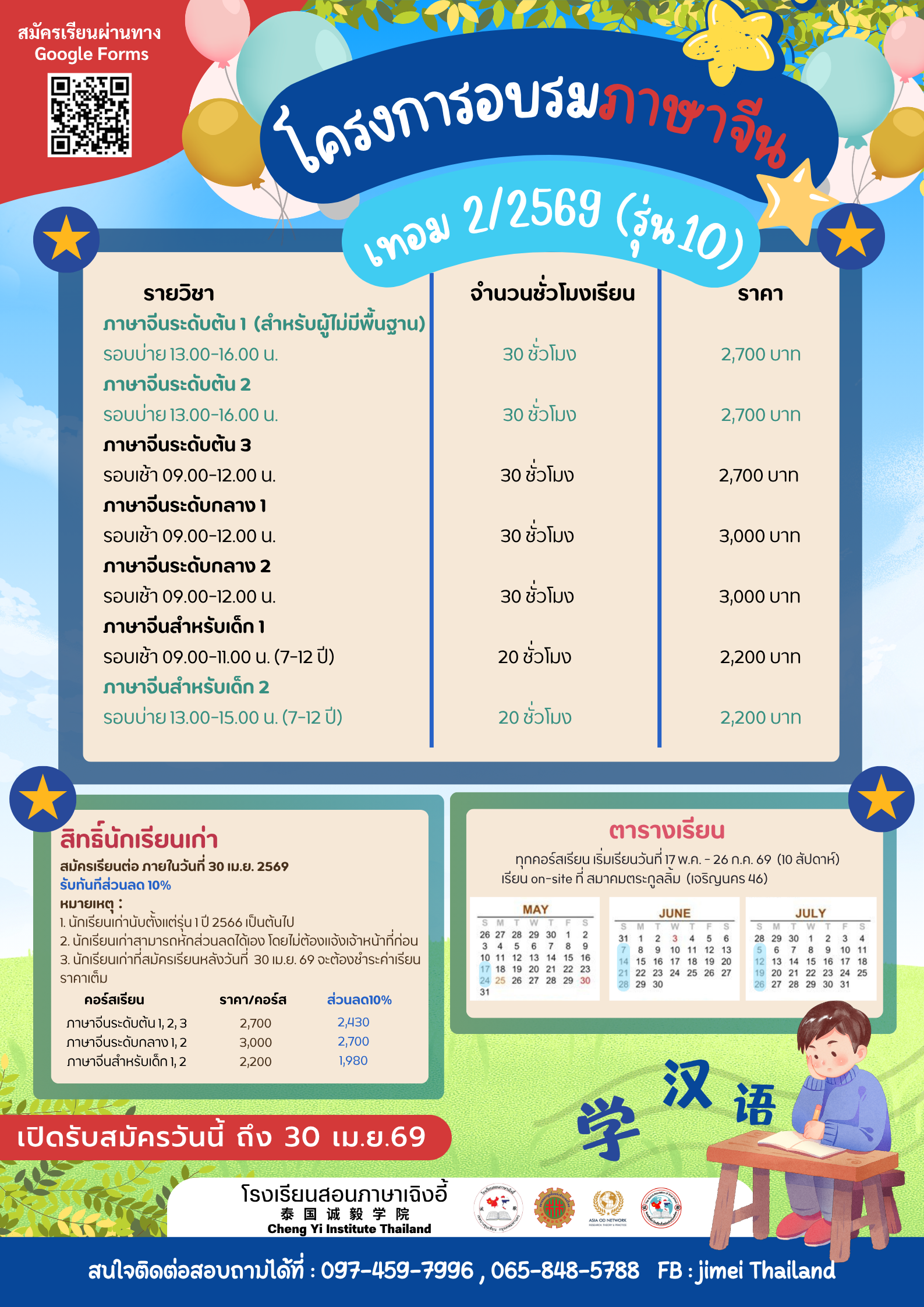โรงเรียนสอนภาษาเฉิงอี้ เปิดรับสมัครอบรมหลักสูตรภาษาจีนและภาษาอังกฤษ เทอม 2/2569